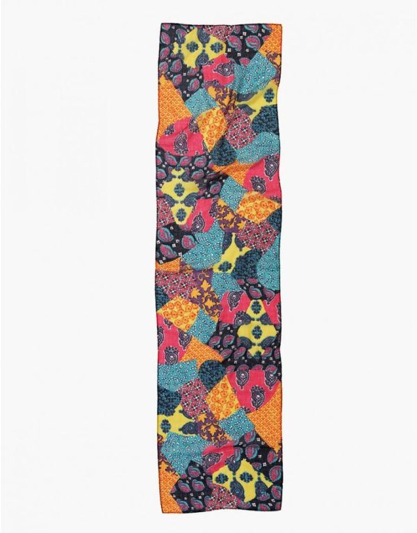 – Foulard imprimé rose fuchsia et vert anis 39x155cm