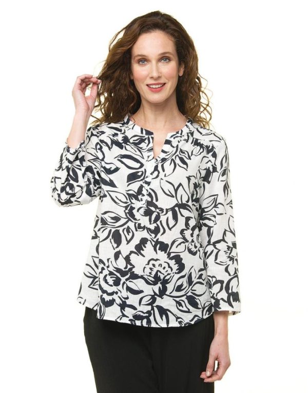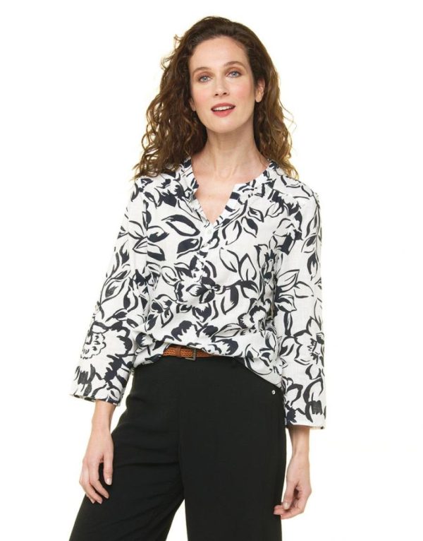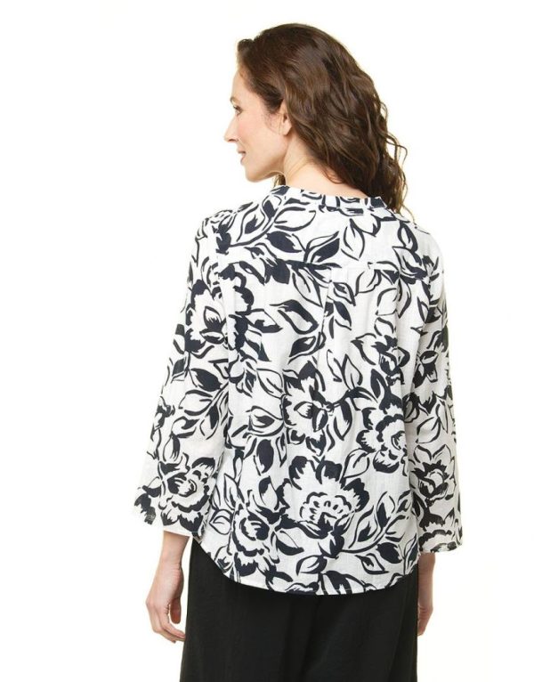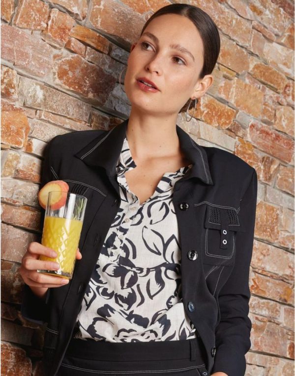 – Une blouse en coton pleine de charme renouvelée par des motifs feuillages