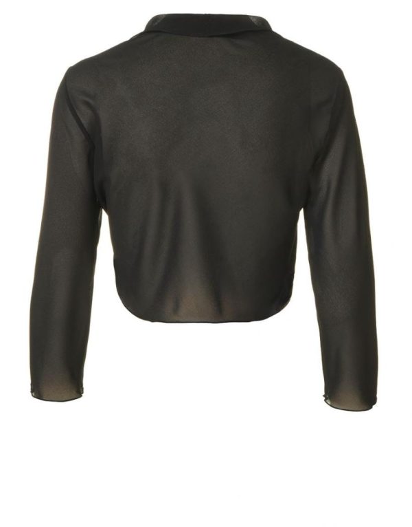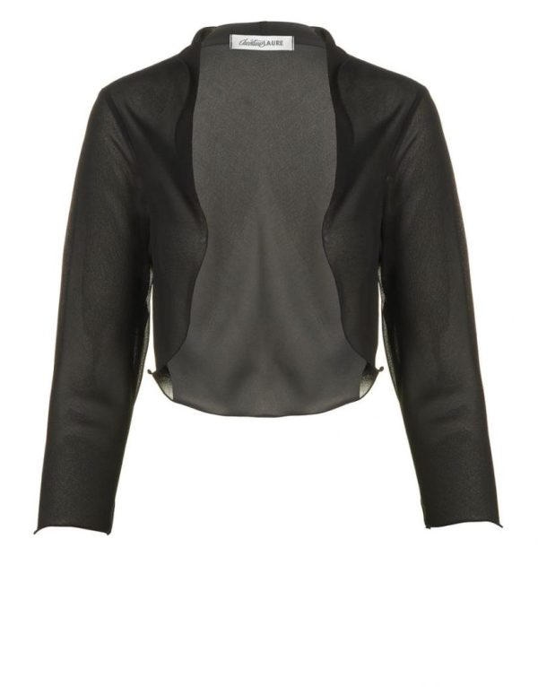 Indispensable pour agrémenter une tenue habillée, ce boléro en voile noir vous séduira par sa sobriété et sa légèreté. Manches 3/4 et col châle pour se glisser sur toutes vos robes de soirée.