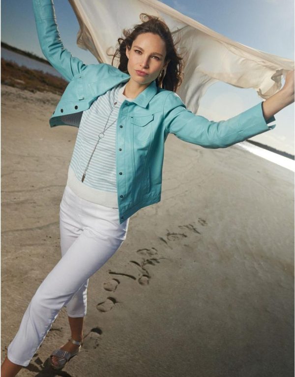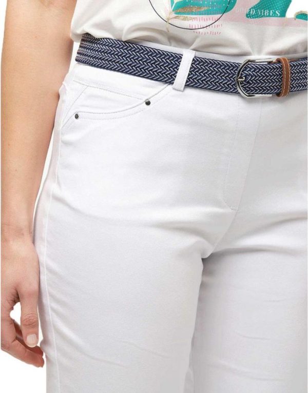 Un petit look 60’s très facile à porter avec ce joli Jegging blanc donc le tissu stretché et la taille élastiquée assurent un confort parfait.