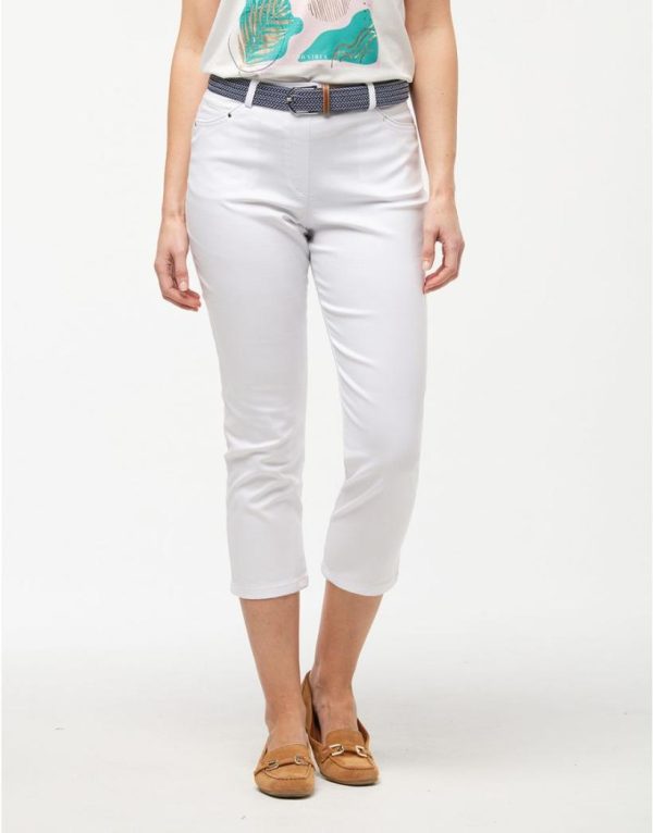 – Estival et confortable, le pantacourt blanc propose une taille élastiquée pour un effet ventre plat.