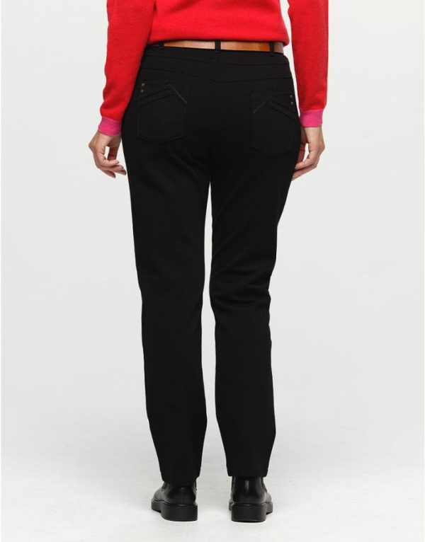 – Découpes devant et poches dos fantaisie pli nervure et surpiqures argentées