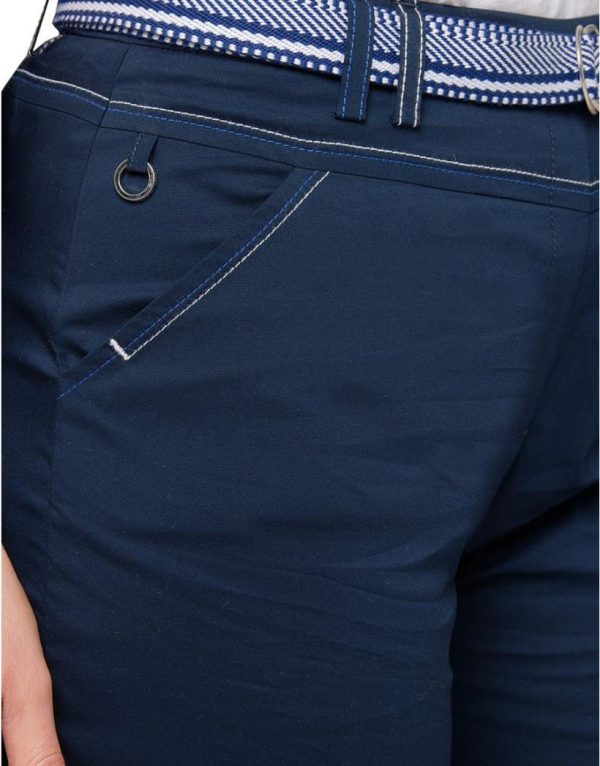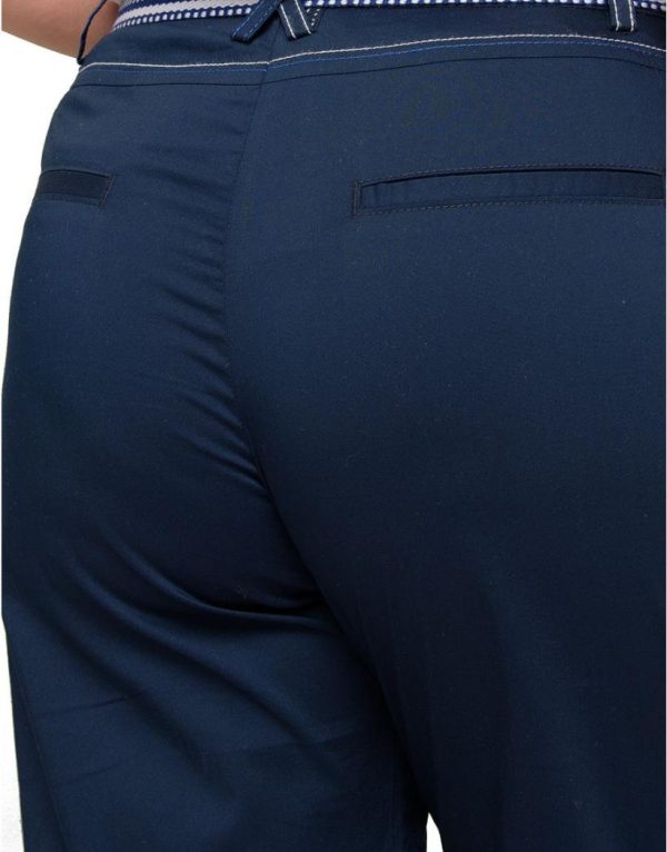 – Pantacourt bleu marine avec surpiqûres blanc et bleu
