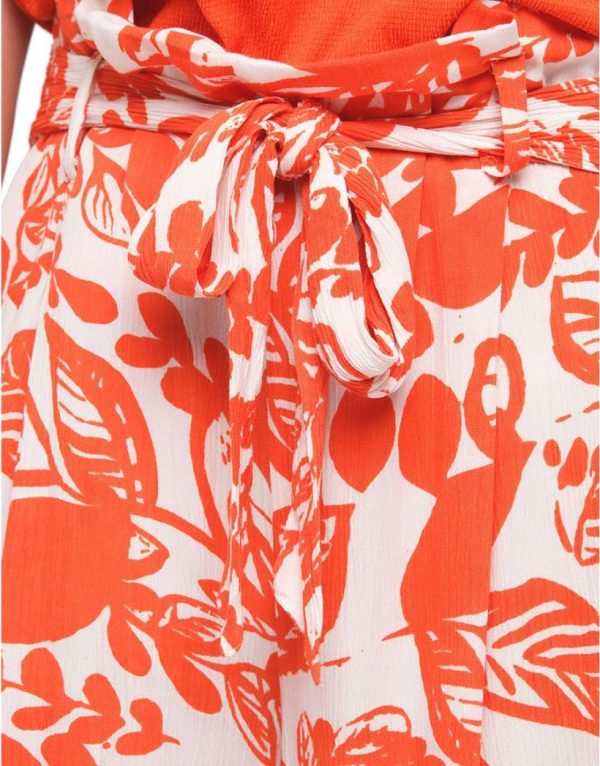 – Imprimé feuillages écru et orange vif