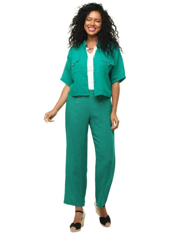 – Pantalon à pont 100% lin vert