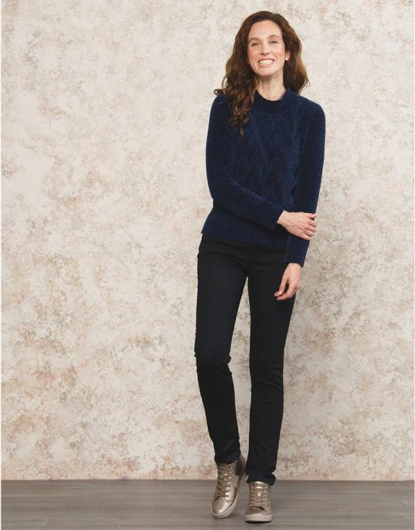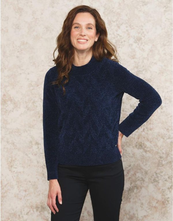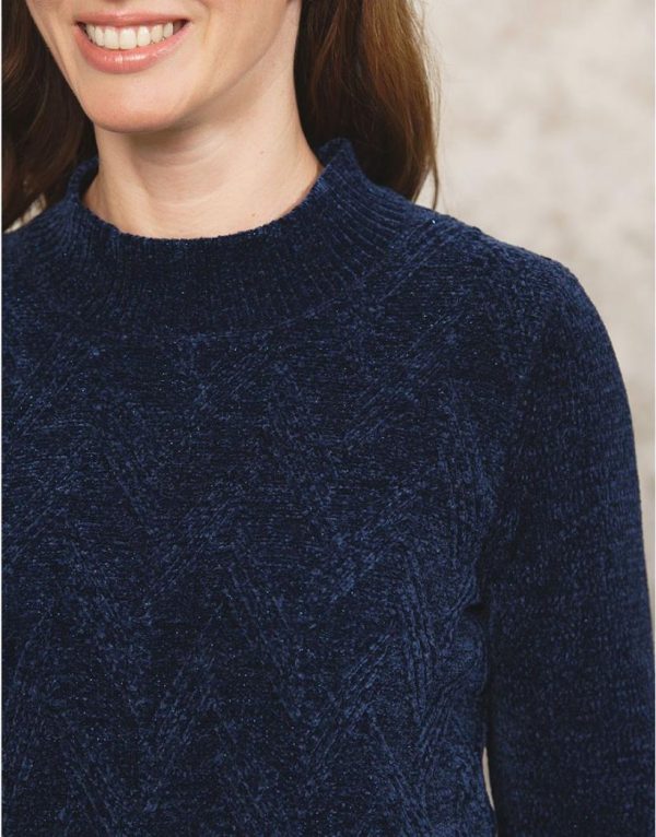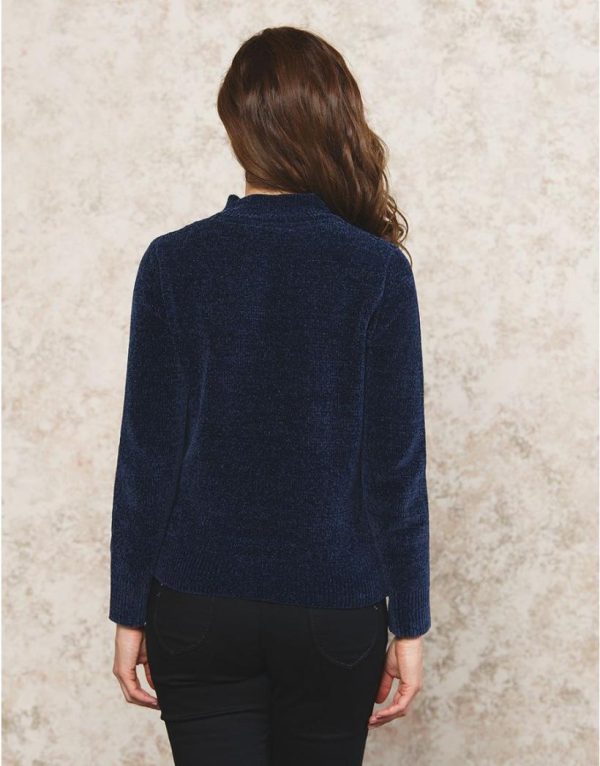 – Pull en maille chenille bleue marine