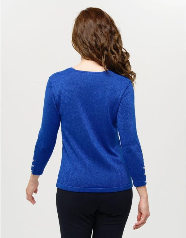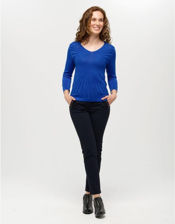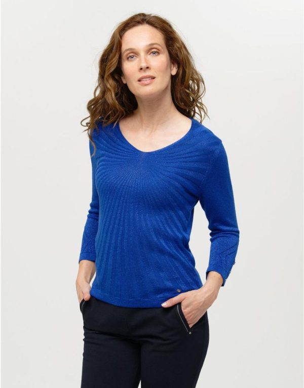 Pulls Et Gilets Col V | Femme Christine Laure Pull Bleu Irisé Chic