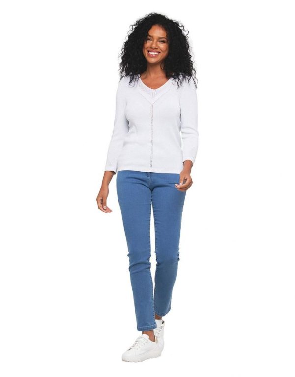 – Encolure en V soulignée d’un point fantaisie ajouré
