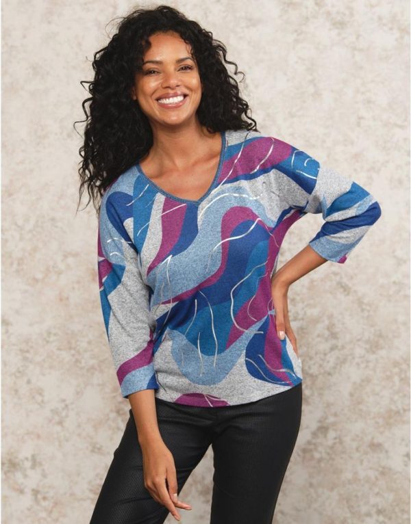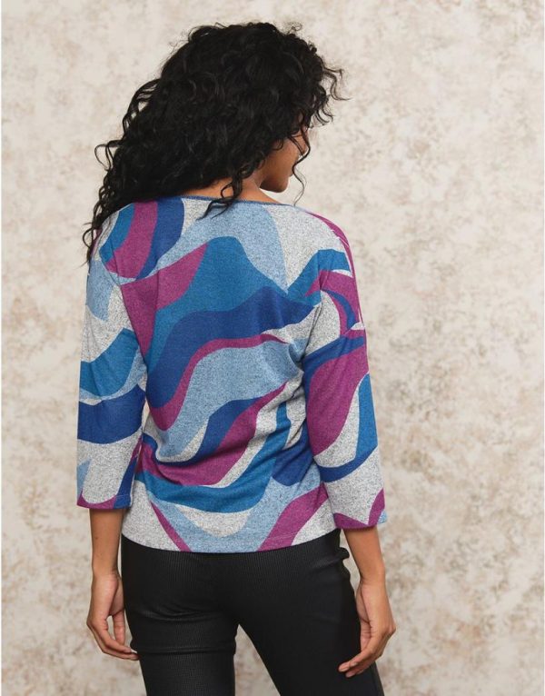 – Fond gris et motif abstrait style vagues bleu et violet et imprimés